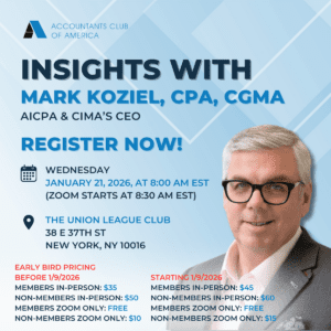 The Accountants Club of America fosters the exchange of ideas to enhance the development and growth of the profession. We encourage the professional development of our members to better serve their clients and the community.